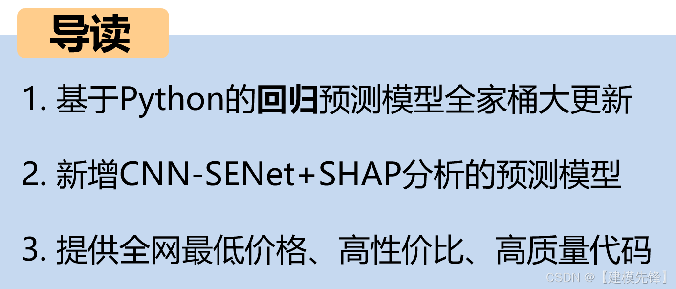 全网最低价,入门回归预测最佳教程,高性价比、高质量代码,大家可以了解一下:(所有全家桶模型会不断加入新的模型进行更新!后续会逐渐提高价格,越早购买性价比越高!!! )一次购买,享受永久免费更新福利!