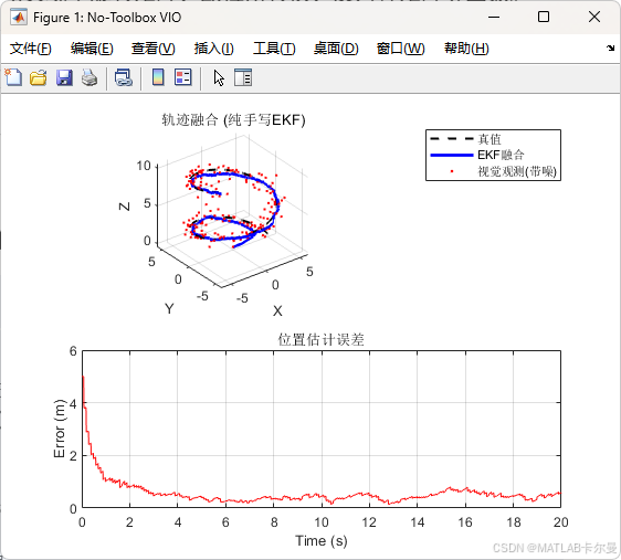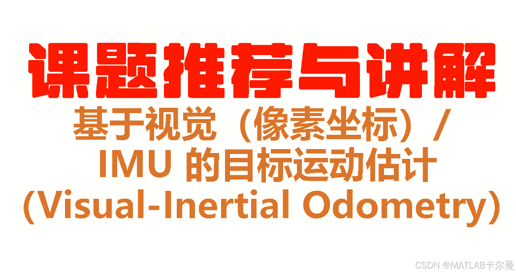 基于视觉(像素坐标)与IMU的目标/自身运动估计是一个经典的多传感器融合问题,结合了图像处理和惯性测量单元(IMU)数据,用于估计目标或自身的运动轨迹。下面是一个课题和相应的MATLAB代码示例,可以作为参考。