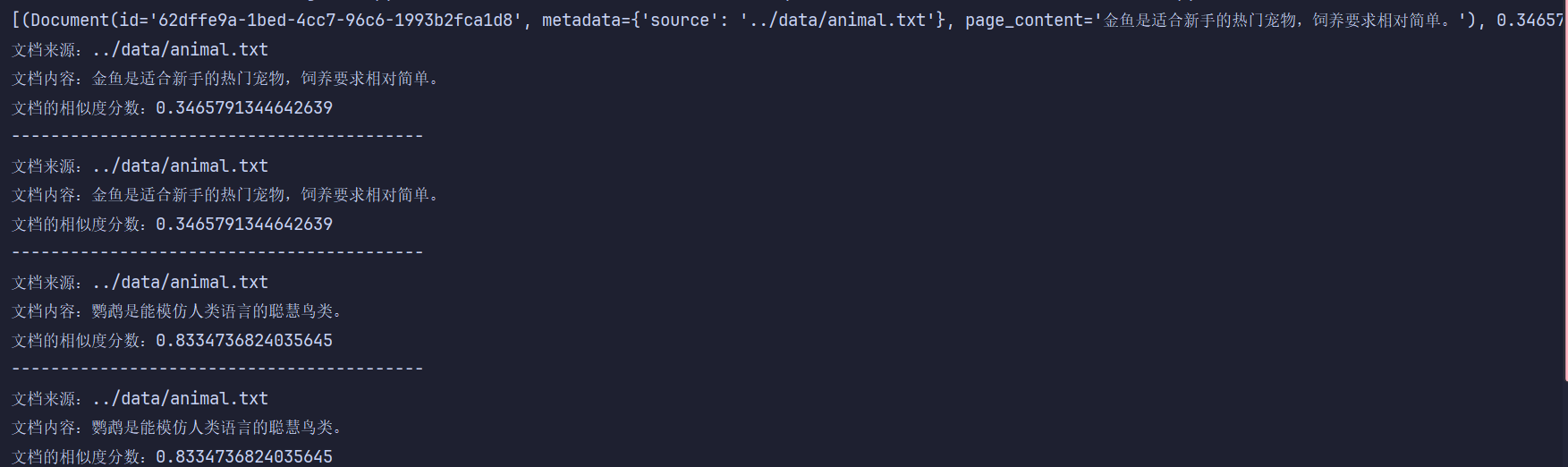 docs = store.similarity_search_with_score("解释一下金鱼", k=4)