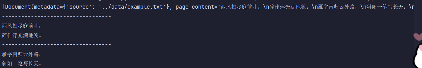 最后打印的两行就能体现 metadata 在检索阶段的真正价值了,检索不是智能给模型看,也要能给人看,而 metadata 支持答案溯源、支持可解释性、支持可信 RAG,所以上麦那那段代码的运行结果为: