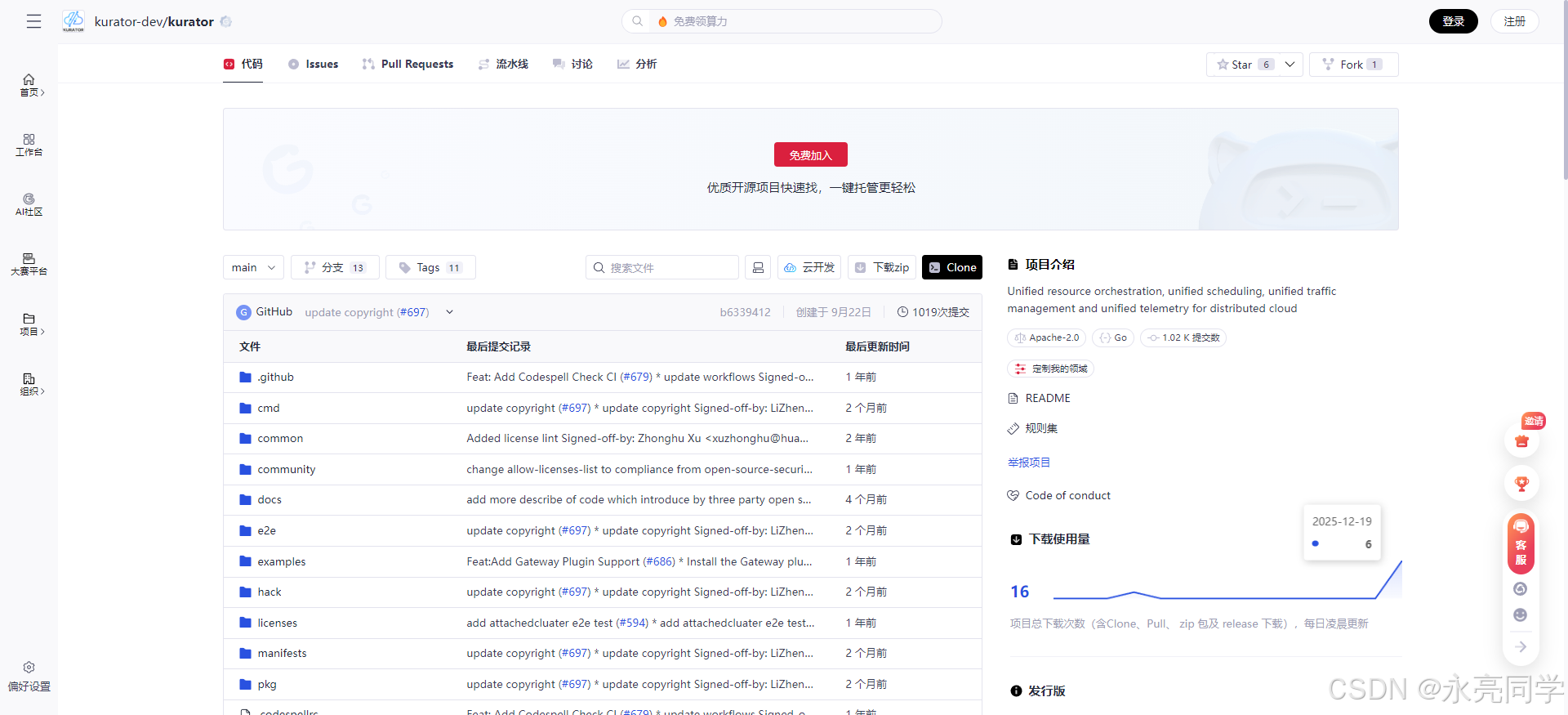 1、我们先打开开源项目地址:https://gitcode.com/kurator-dev/kurator