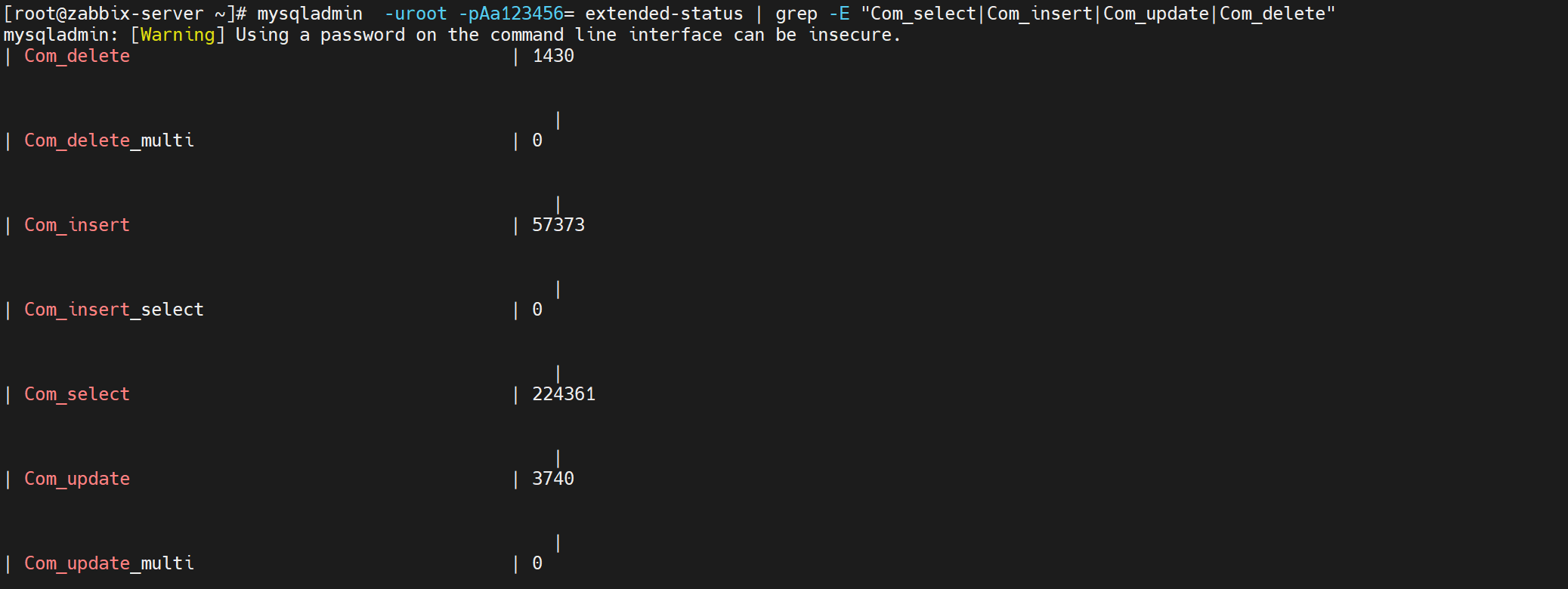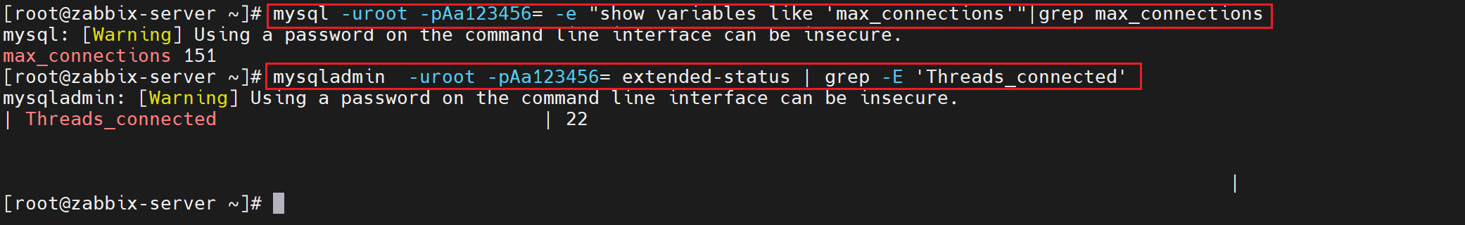 mysqladmin -uroot -pAa123456= extended-status | grep -E 'Threads_connected'
