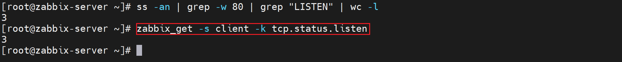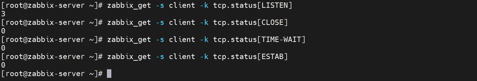 zabbix_get -s client -k tcp.connect.status[LISTEN]