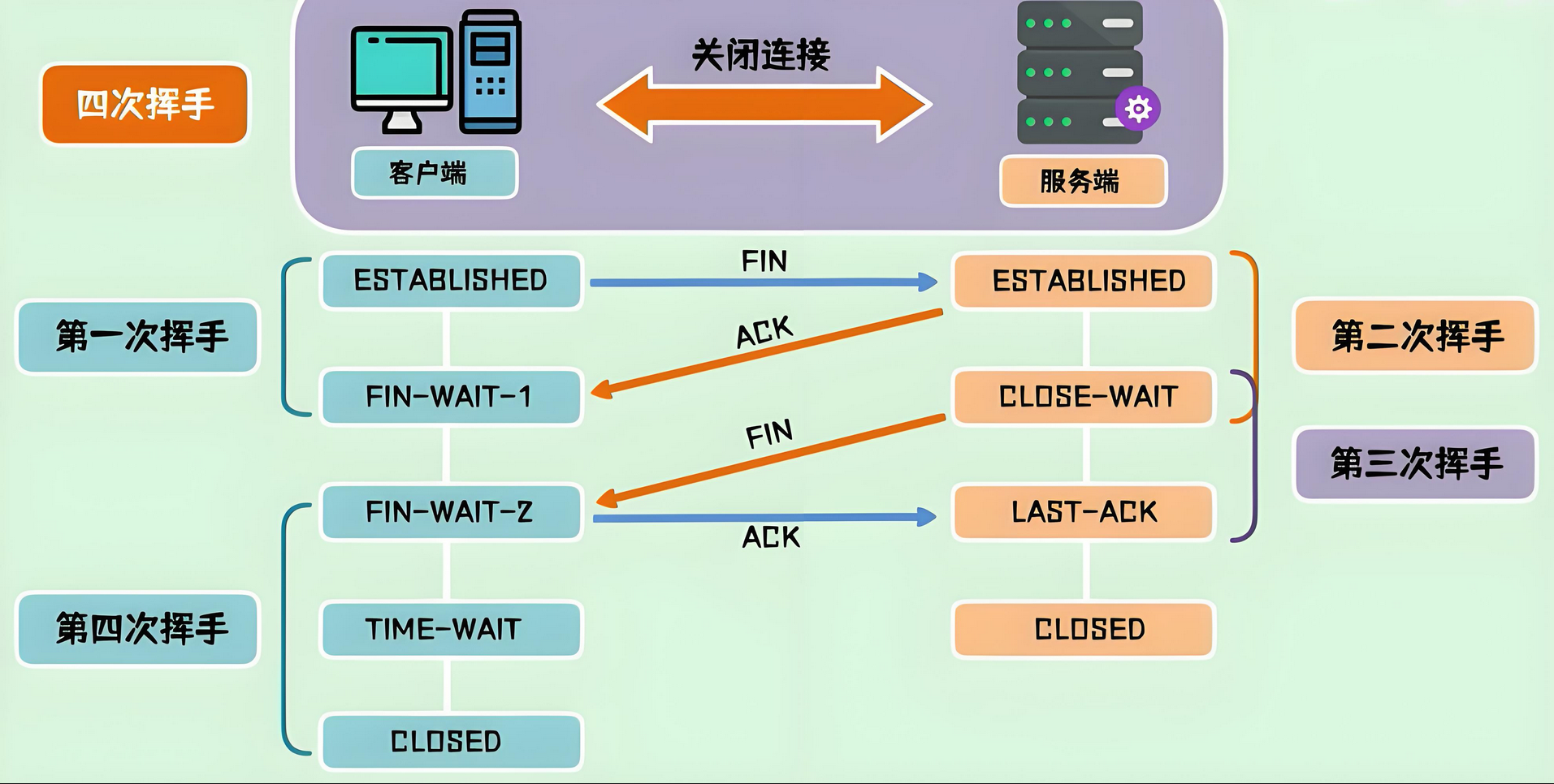 TIME_WAIT 表示收到了对方的FIN报文,并发送出了ACK报文,等待2MSL后就可回到CLOSED状态