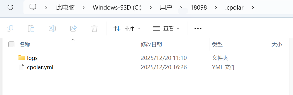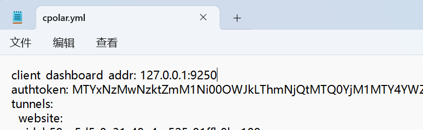 - windows系统: c:\Users\用户名.cpolar\cpolar.yml,右键点击"打开方式"------"记事本",选择使用记事本打开
