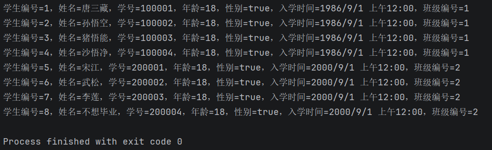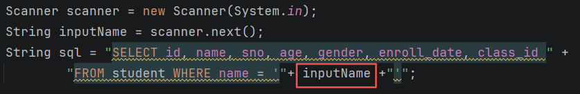 String sql = "SELECT id, name, sno, age, gender, enroll_date, class_id " +