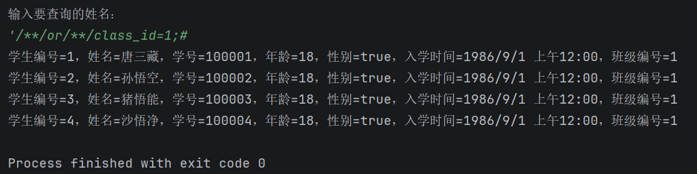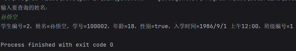 -- 示例:根据学生姓名查询数据库,然后打印学生信息