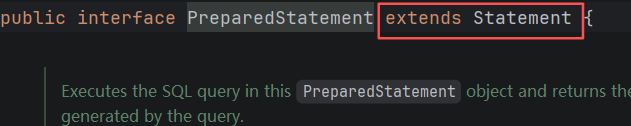 - PreparedStatement对象虽然可以向上转型成Statement类型,但这样的话就无法使用PreparedStatement类中的特定方法了(如setInt()、setString())!!!