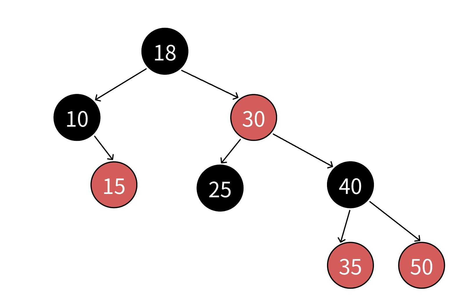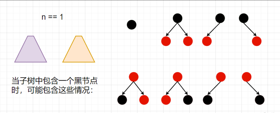 显然,红黑树 中每条路径都是 红黑相间 的,因为不能出现连续的 红节点 ,所以 黑节点的数量 >= 红节点