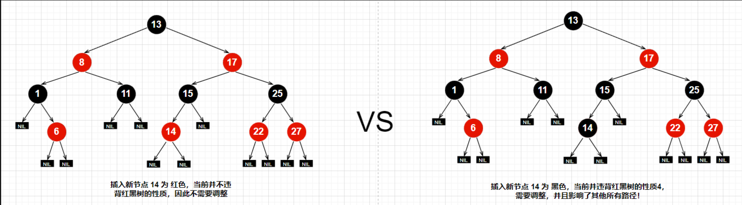 - 如果为 黑,必然违反原则4,并且因为这一条路,影响了其他所有路径,调整起来比较麻烦
