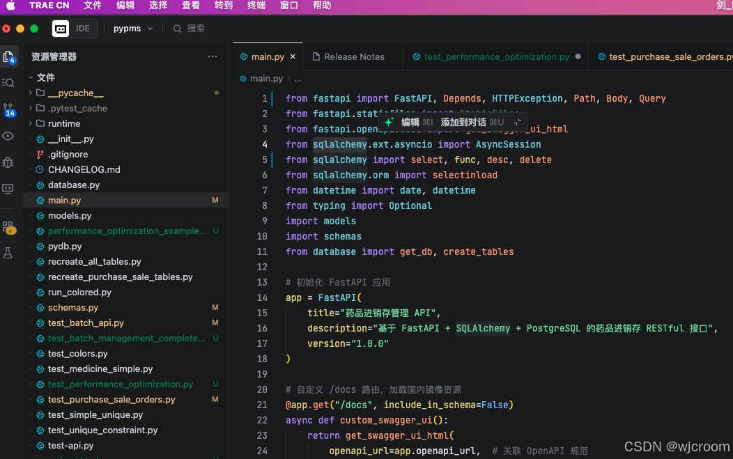 fastapi+PostgreSQL+sqlalchemy,现在这几个sql都一样,听说这个更好,用它吧,fastapi和flask对比了一下,对于restful来说fastapi更合适。我把需求告诉trae cn。在几分钟内,一个完整的后端实现就出来了。