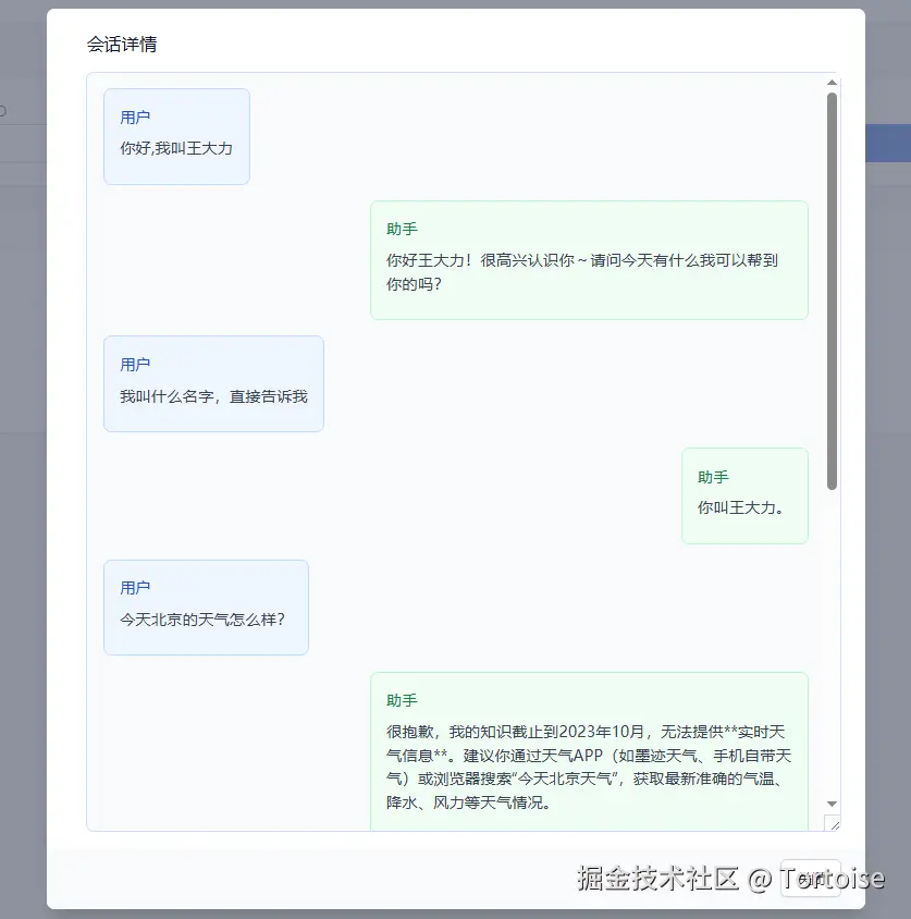 💡 注意:第二次调用时,系统自动包含了对话历史,确保AI能记住用户名字。