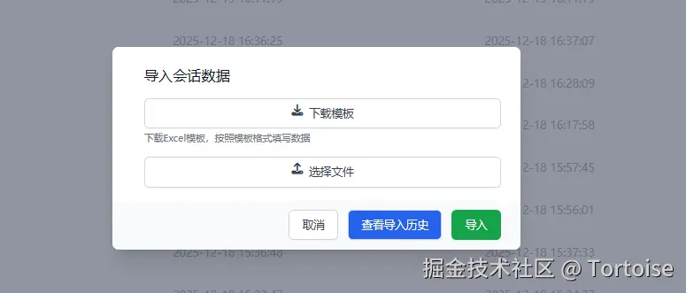 - 下载并填写模板 - 点击 "下载模板" 获取标准格式文件。