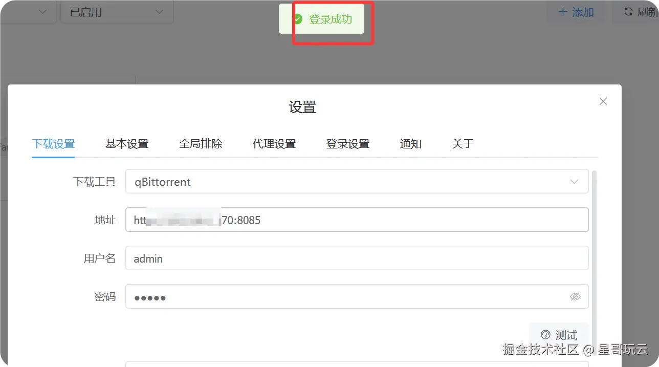 - 配置下载工具:进入 "设置"→"下载器",选择你已安装的工具(如 qBittorrent),输入工具的 IP、端口、账号密码,点击 "测试连接",显示 "连接成功" 即可;