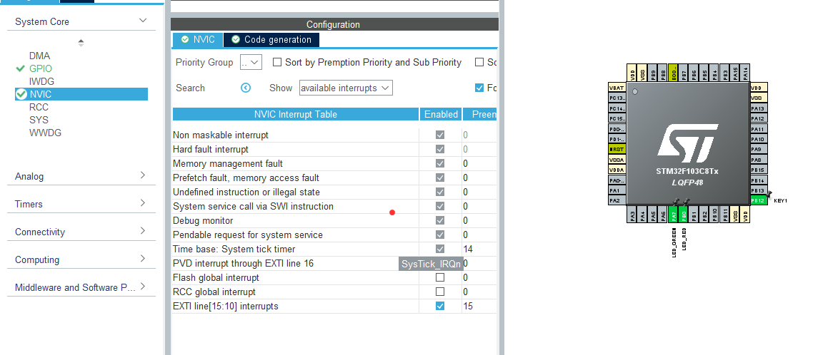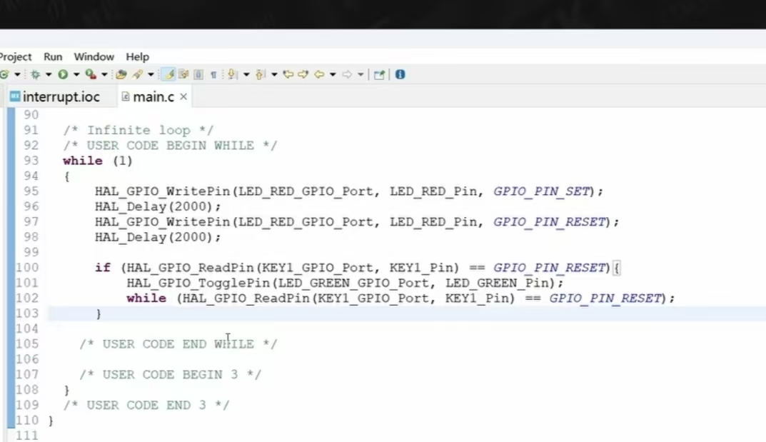 为了按下KEY1马上实现 LED_GREEN亮灭又不改变HAL_Delay();延时功能就需要用到中断