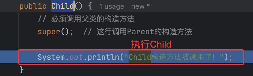 System.out.println("A的构造方法被调用"); - 输出:✅