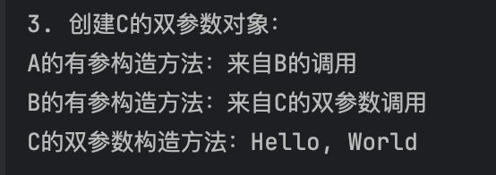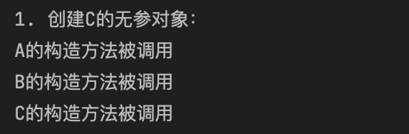 System.out.println("C的构造方法被调用"); - 输出:✅