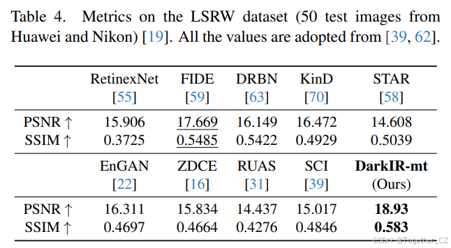 LOLv2 (real) [64]:689 对低/高光照图像训练,100 对测试。
