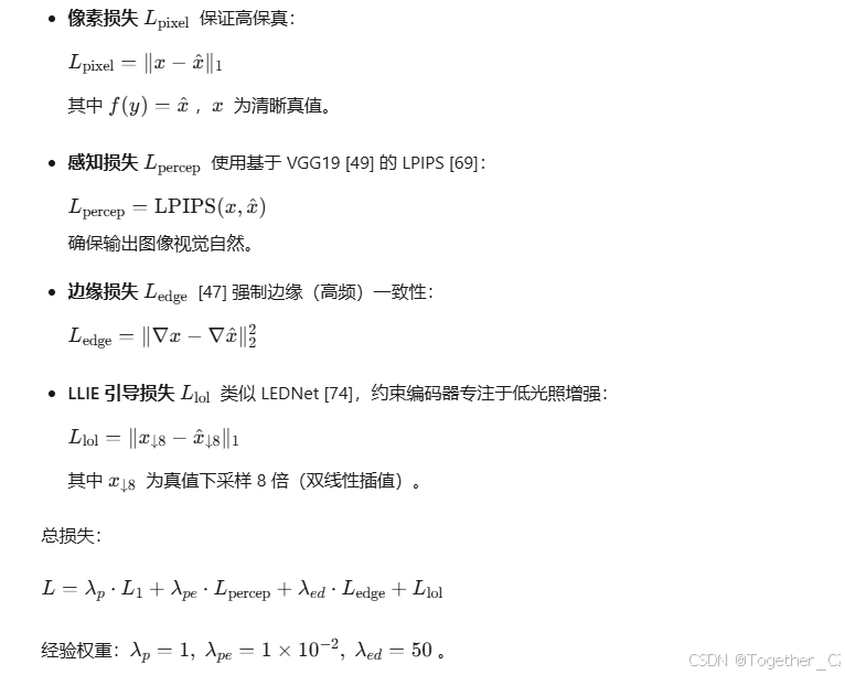 结合像素L1、感知LPIPS、边缘梯度与低分辨率引导损失,确保高保真与视觉自然。