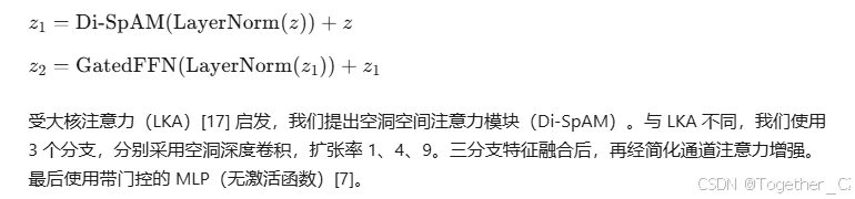 SpAM 类似 NAFBlock [7],采用倒置残差块与简化通道注意力(SCA)。不使用激活函数,而采用简单门控机制,使模型在频域增强前提取有意义的空间信息。