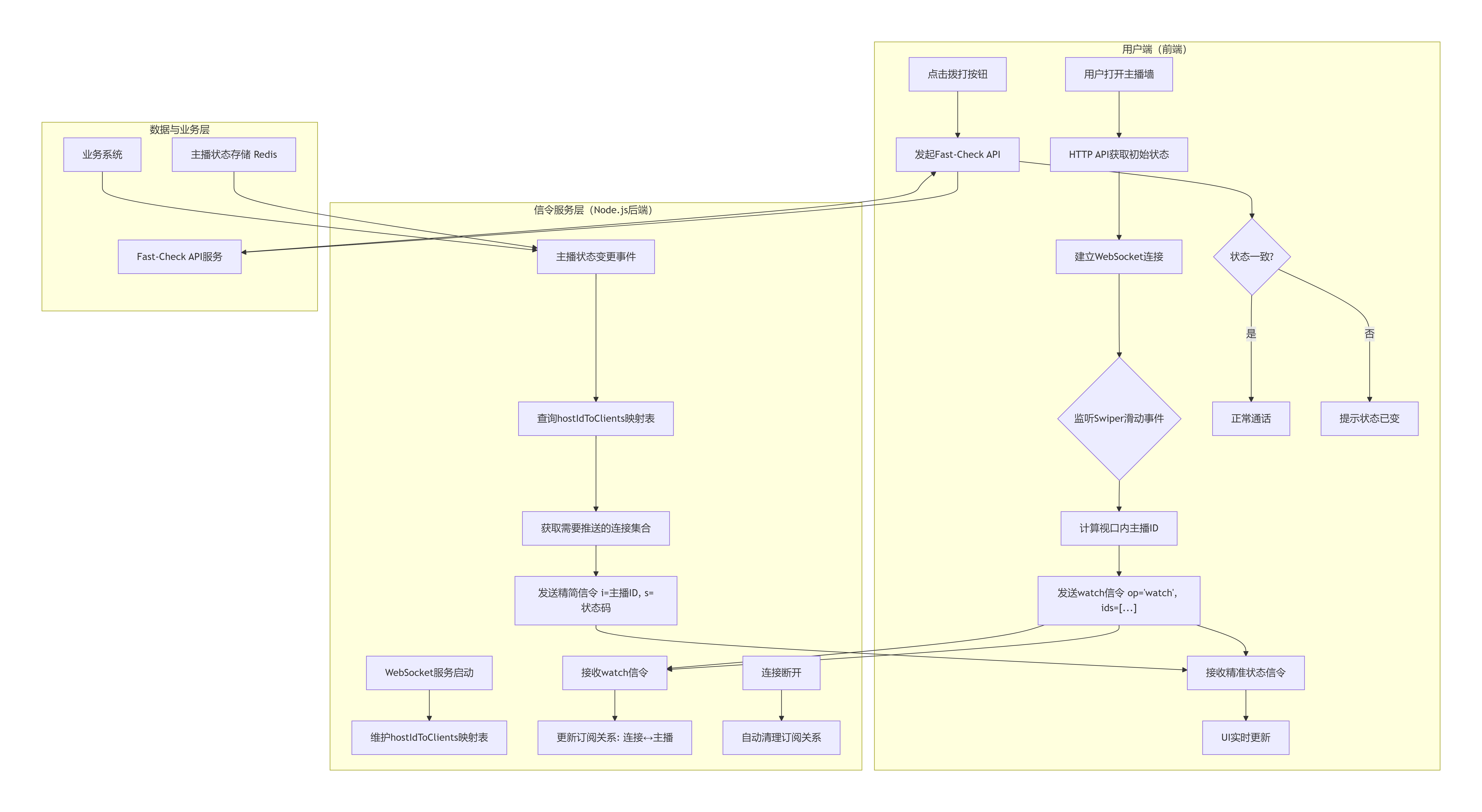 - 做法:结合 WS 的实时性与 HTTP 的确定性,只对"用户正在看的主播"进行精准信令推送。