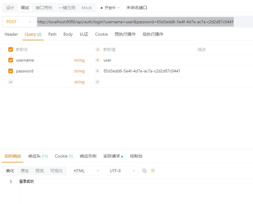 方法链风格编码,只有登录正确与否的字符显示,没有页面跳转。