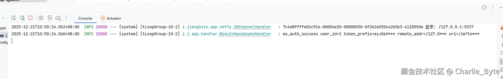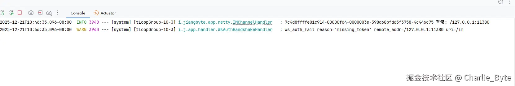 要是验证通过了,就把用户 ID 存到当前 Netty Channel 的属性里,这样后面处理消息的时候,随便哪个 Handler 都能拿,这就实现了"一次认证,全程可用"。