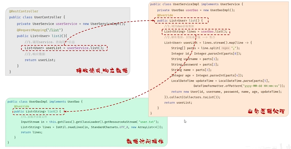 接收前端发起的请求,需要定义一个请求处理类(@RestController) 即controller.在该类中定义方法(@RequestMapping)接收前端发起的请求以及读取文本数据并响应: