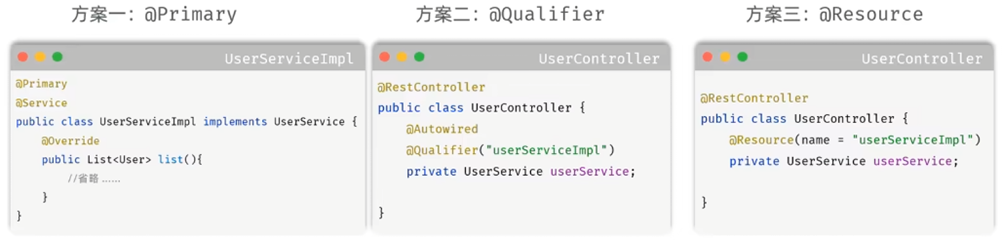 @Autowired注解,默认是按照类型进行注入的。如果存在多个相同类型的bean,将会报错。
