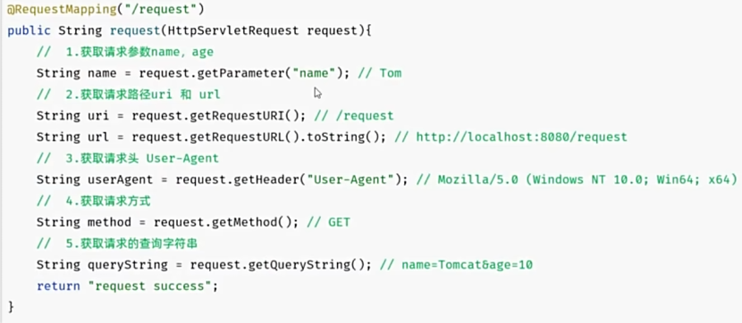 Web服务器(Tomcat)对HTTP协议的请求数据进行解析 ,并进行了封装 (HttpServletRequest ),调用Controller方法的时候传递给了该方法 .这样,就使得程序员不必直接对协议进行操作,让Web开发更加便捷.