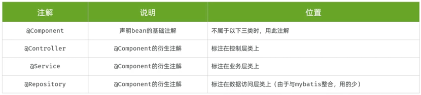 把某个对象交给IOC容器管理,需要在对应的类上加上如下注解之一:
