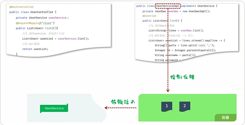 依赖注入 :简称DI 。容器为应用程序提供运行时所依赖的资源,称之为依赖注入。