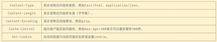 常见的响应头: