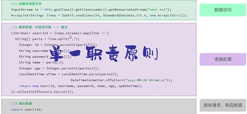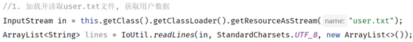 ①加载并读取user.txt文件 ,借助hutool工具类来读取文本中的用户数据并封装到集合中.