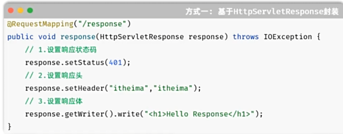 Web服务器对 HTTP协议的响应数据进行了封装 (HttpServletResponse ),并在调用Controller方法的时候传递给了该方法 .这样,就使得程序员不必直接对协议进行操作,让Web开发更加便捷.