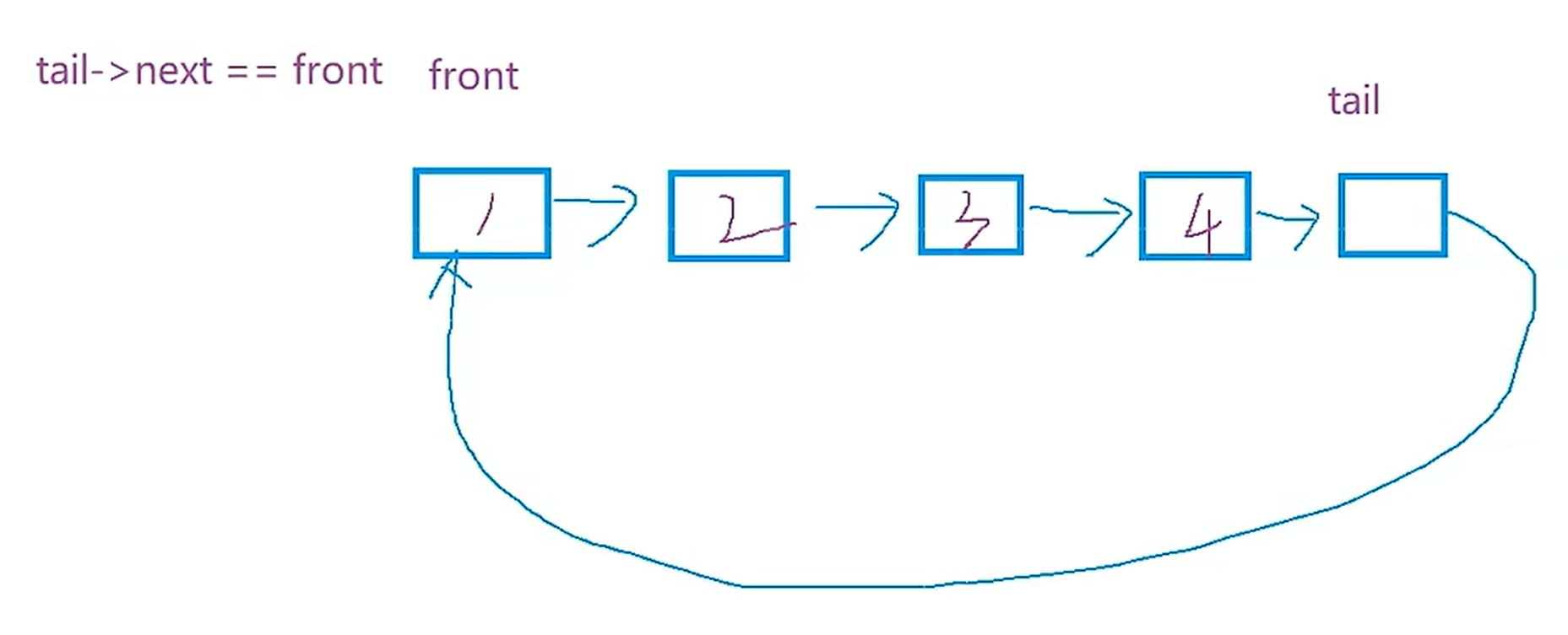 cur->next = cq->head;