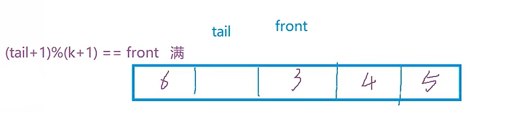无论使用数组实现还是链表实现,都要多开一个空间。如果设计存k个数据的循环队列,就要开k+1个空间。否则无法实现判空和判满。