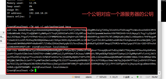 目标服务器 执行命令 cat ~/.ssh/authorized_keys 查看源服务器生成的ssh公钥内容