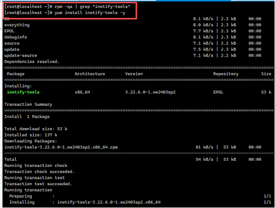 执行命令 rpm -qa | grep "inotify-tools" 检查是否安装inotify-tools