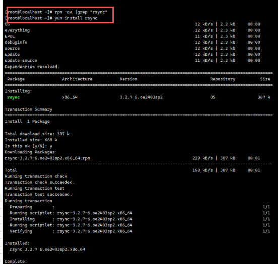 执行命令 rpm -qa | grep "rsync" 检查是否安装rsync