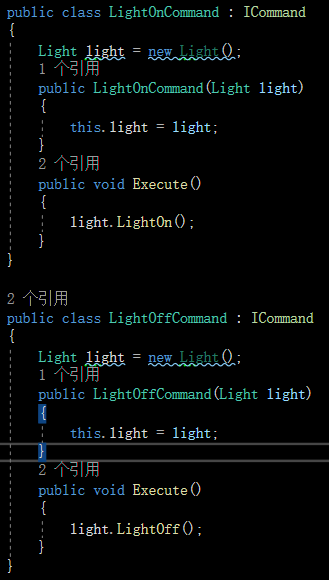 里氏替换原则(LSP):LightOnCommand和LightOffCommand类都实现了ICommand接口,可以替换ICommand类型的对象。这样,SimpleRemote类可以接收任何实现了ICommand接口的命令对象,符合LSP原则。