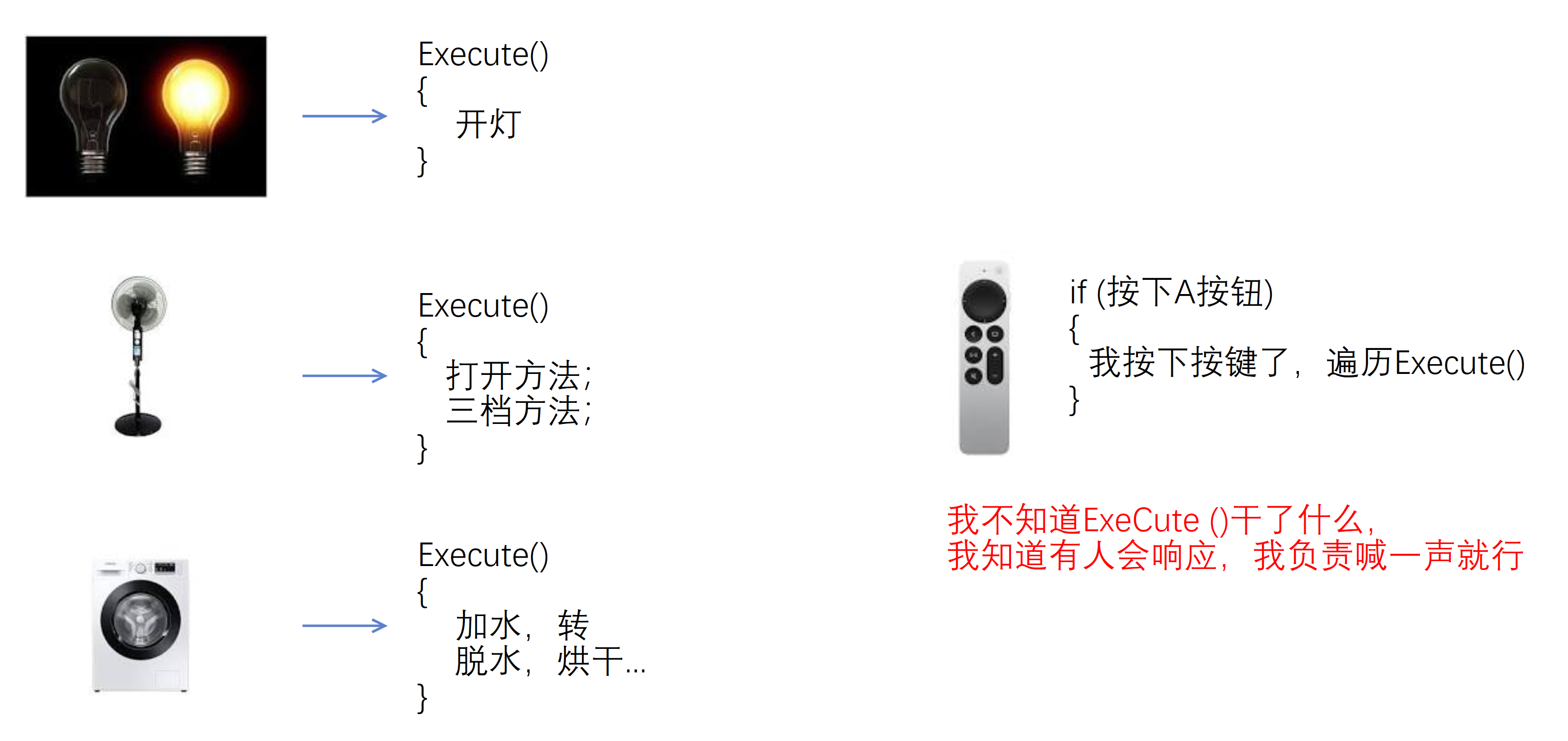 首先让我们想想一下,一个最简单的实现,按下遥控器,灯就亮了的逻辑