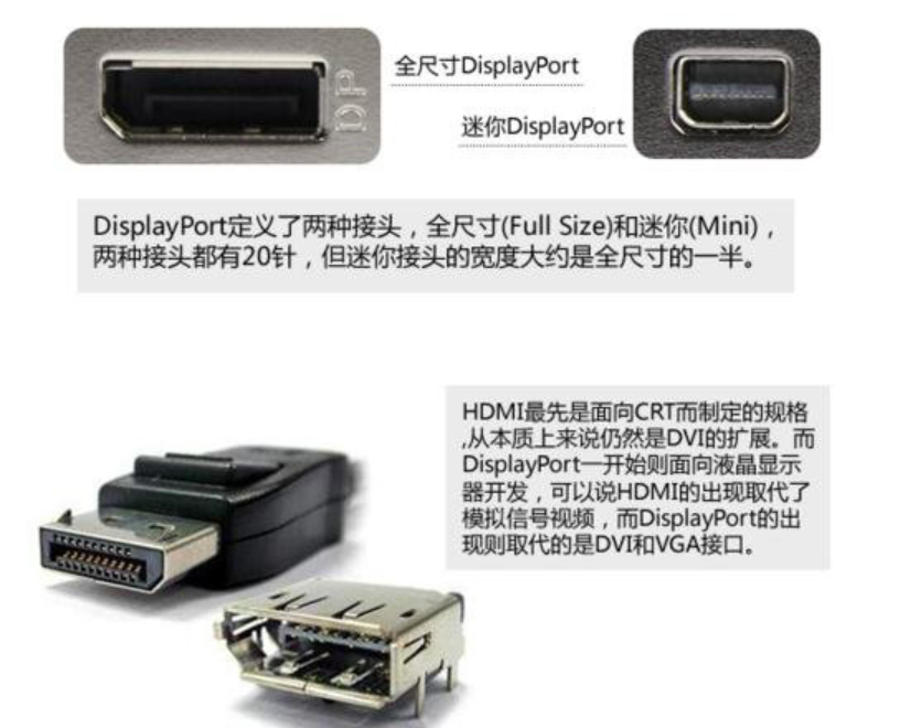 2、若显示器采用1920*1200以下分辨率,DVI-I,DVI-D,HDMI,DP接口均可,屏幕尺寸影响较小;