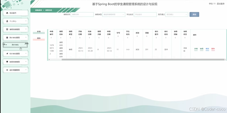 基于springboot + vue学生请假管理系统