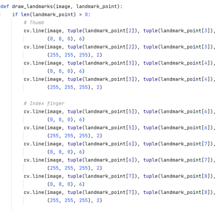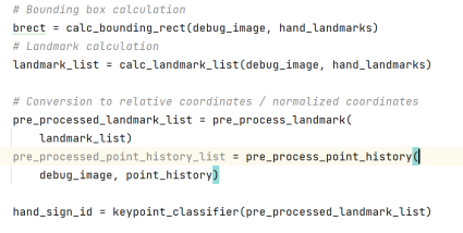 下图代码实现了手部关键点信息的处理,得到识别手势结果。