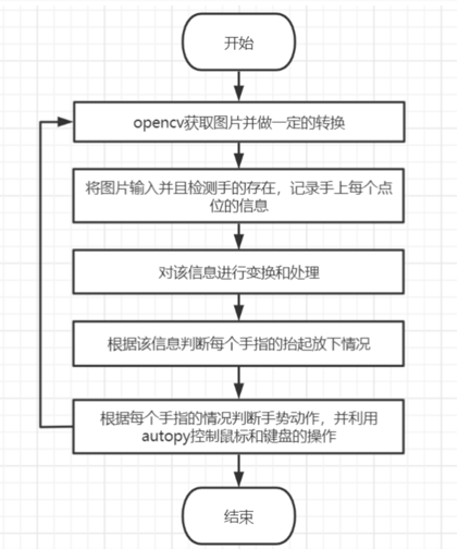 - 可以使用mediapipe库和pyautogui实现使用电脑摄像头进行手势识别,实时控制电脑鼠标完成移动、左右键、上下翻页等功能,实时控制键盘完成相应按键的按下。