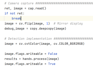 下图代码实现了opencv对图片获取与转换,并且根据mediapipe得到手部关键点结果。