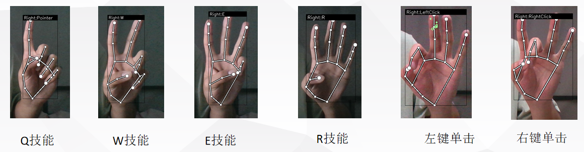 但是为了让手势识别能够落实于一个具体的项目,我们首先将目标定于简单的马里奥游戏即需要能够识别上下左右四个按键的手势,并实现与马里奥游戏的按键交互。其中需要自行录入较多的操作手势进行一个模型训练,为了方便操作以及简化训练,我们采用左手操控按键,右手控制鼠标的方式。在尝试的初步效果还不错后,我们便是将方向转移至较为复杂的英雄联盟游戏,其中需要录入较多技能按键,以及实现鼠标的左右键控制。