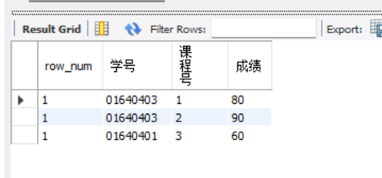 (SELECT ROW_NUMBER()OVER(PARTITION BY 课程号 ORDER BY 成绩 DESC) AS row_num,