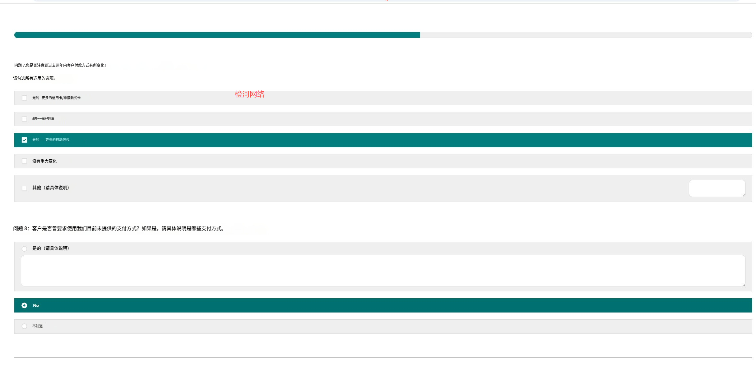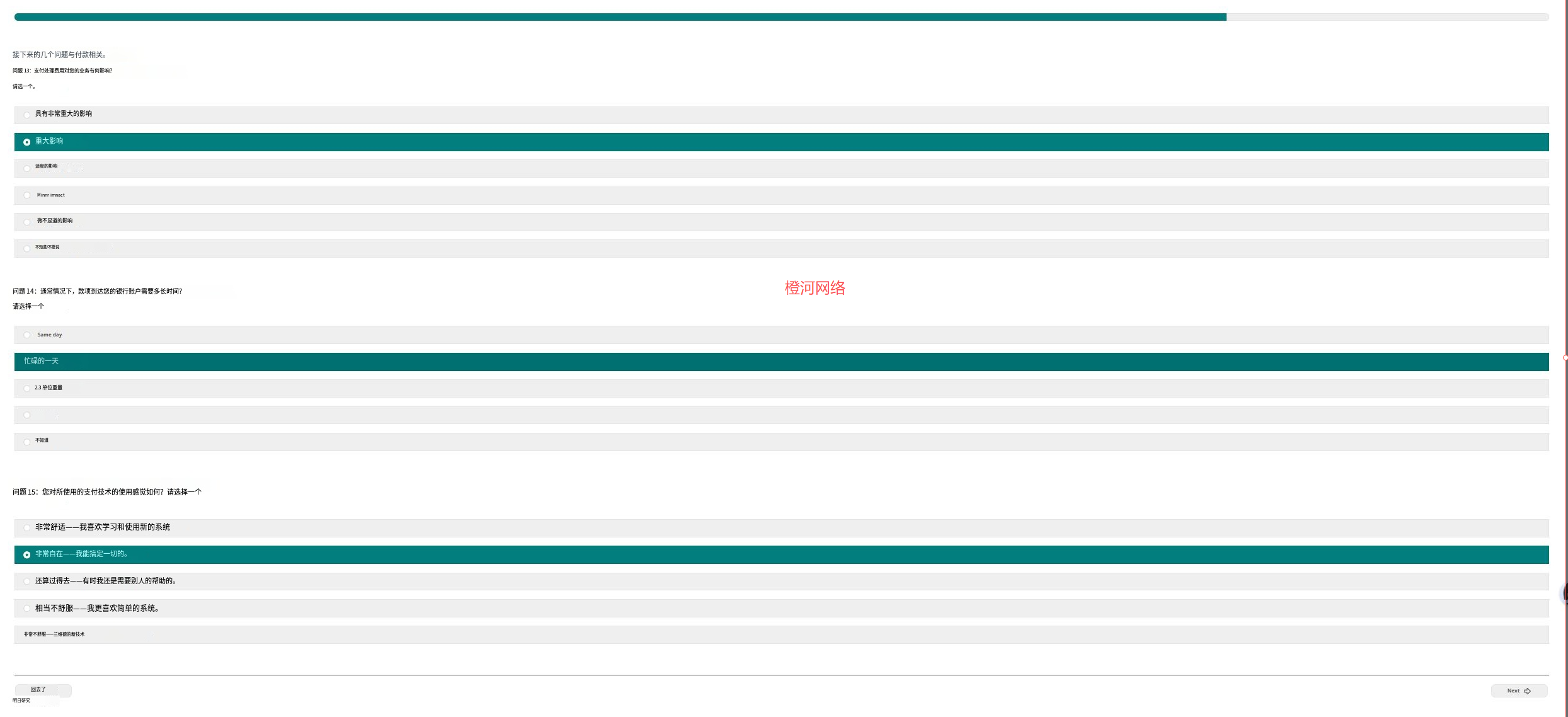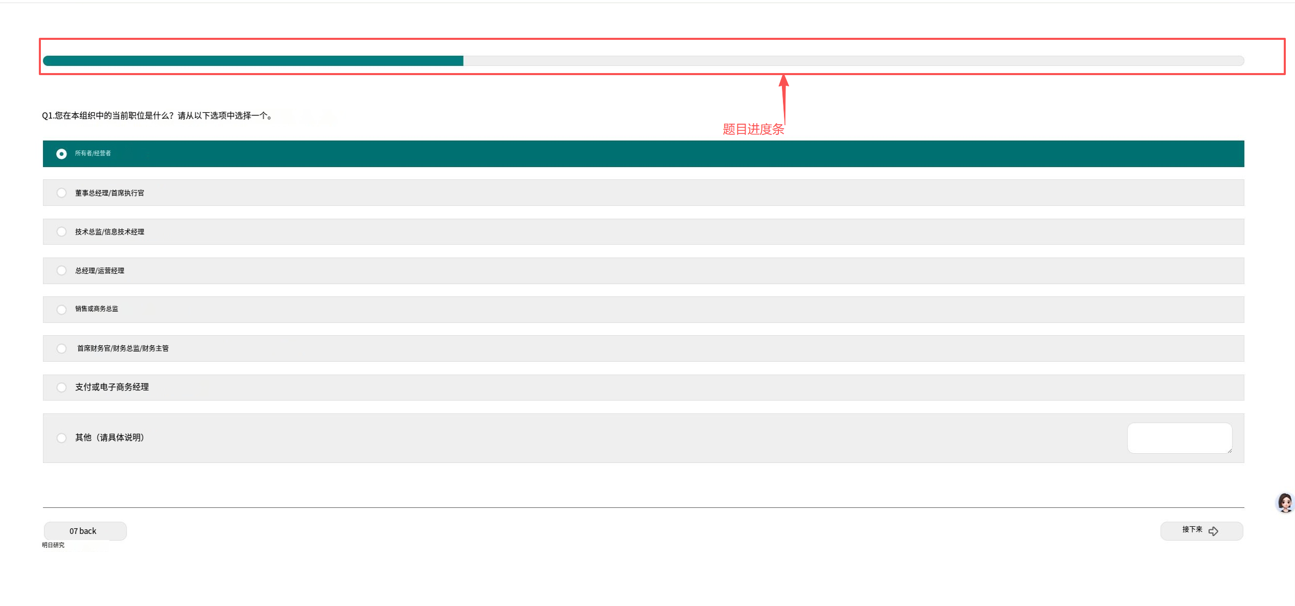 上面图片里标红的方框里,就是这份问卷的进度条,我们可以根据随查看自己的答题进度。